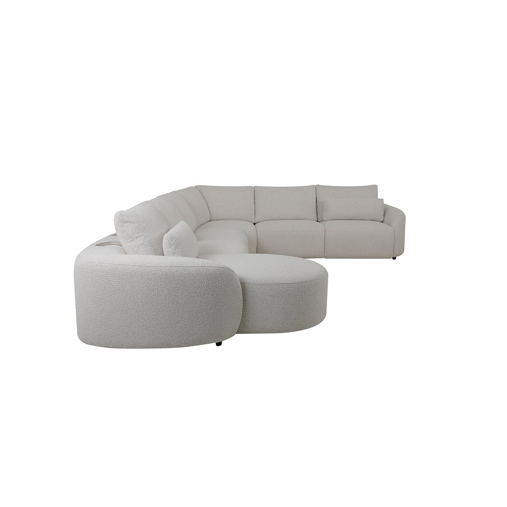 A graceful curved back design that envelops the user in comfort and warmth, creating a cozy and inviting seating experience. Complemented by a sleek modern armrest, this distinctive combination of elements enhances the sofa’s aesthetic appeal while ensuring optimal support and relaxation.